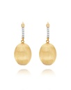 Elegant yellow gold and diamond earrings. The golden and uneven surface, entirely hand-engraved by our artisans with a special burin tool, creates together with diamonds a prodigious game of lights to be combined with a both elegant and casual look.